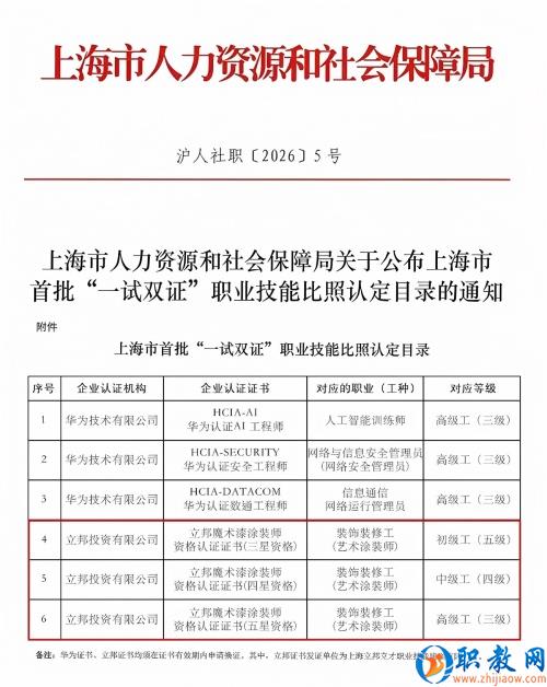 1月8日,上海市人力資源和社會(huì)保障局發(fā)布《關(guān)于公布上海市首批“一試雙證”職業(yè)技能比照認(rèn)定目錄的通知》。立邦成為上海市首批“一試雙證”職業(yè)技能認(rèn)定企業(yè),正式獲得在上海市范圍內(nèi)對(duì)“裝飾裝修工(藝術(shù)涂裝師)”職業(yè)開(kāi)展初級(jí)、中級(jí)、高級(jí)職業(yè)技能比照認(rèn)定的資格。這標(biāo)志著立邦推行的企業(yè)人才標(biāo)準(zhǔn)實(shí)現(xiàn)與上海市職業(yè)標(biāo)準(zhǔn)互通互認(rèn),被納入上海市公共技能人才評(píng)價(jià)體系。