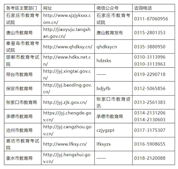 六、各考區(qū)主管部門網(wǎng)址、微信公眾號(hào)及咨詢電話