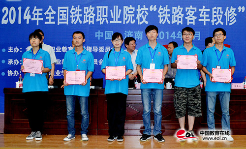中國教育在線訊 5月29日,2014年全國鐵路職業院校“鐵路客車段修”技能競賽在山東職業學院圓滿落幕。閉幕式上,山東職業學院黨委書記王榮昌、副院長徐冬、鐵道車輛專業教學指導委員會主任袁清武,鐵道車輛專業教學指導委員會副主任、競賽總裁判長劉志明,鐵道車輛專業教學指導委員會委員董黎生為獲獎個人頒發了榮譽證書。