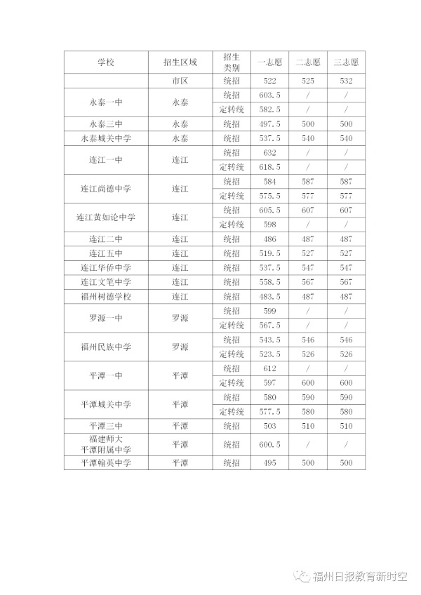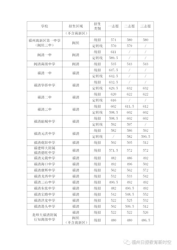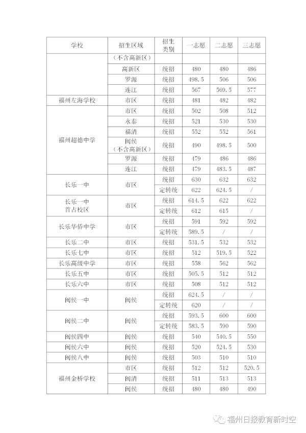 2020年福建福州中考普高學校最低錄取分數線公布